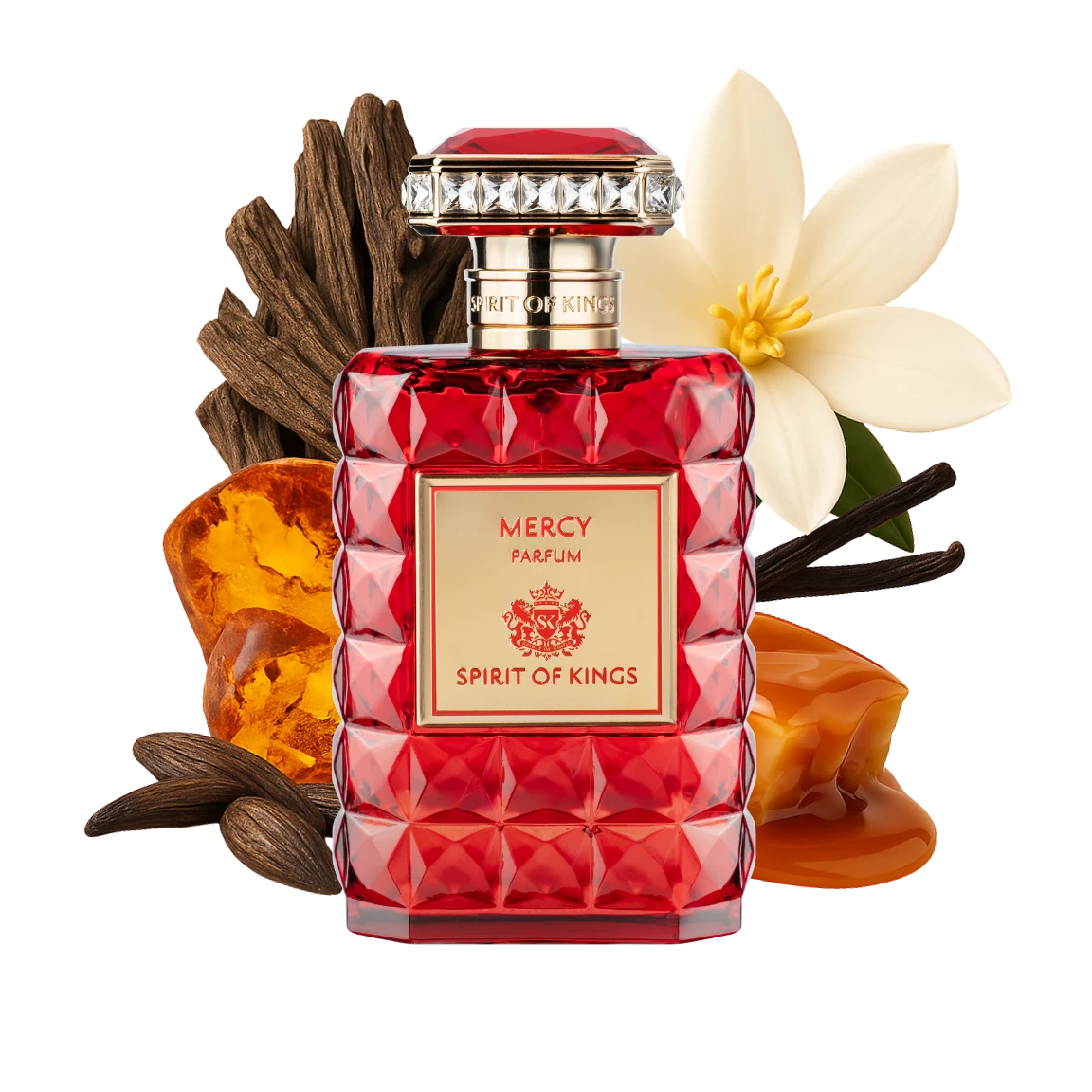 A comforting ambery gourmand built around warmth and softness. Rich amber and caramel melt into vanilla and woods, creating a gentle yet enveloping trail that speaks of compassion, forgiveness, and quiet strength.