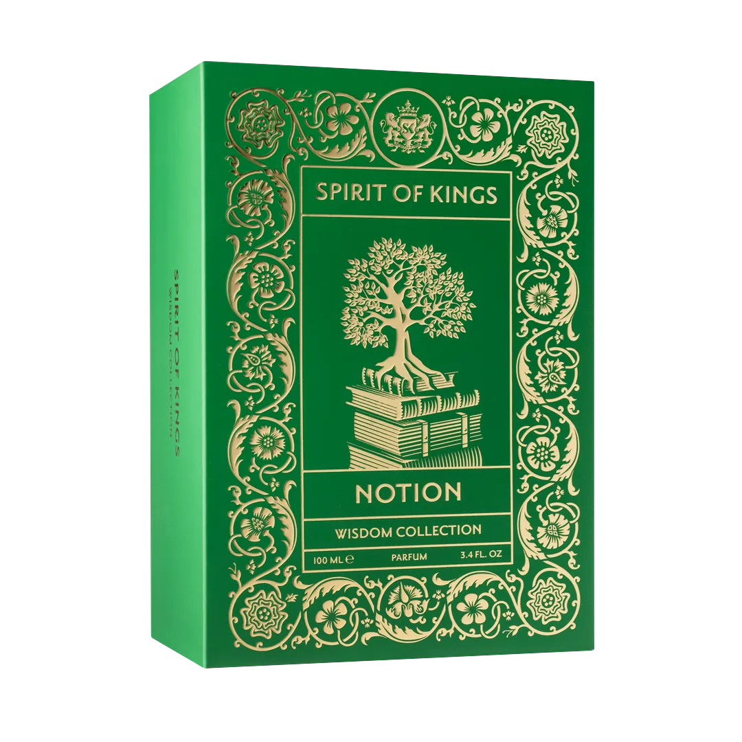 This perfume with its fresh, spicy notes such as eucalyptus, ginger and lime symbolize innovative thinking, visionary leadership, and the transformative power of ideas within royal courts. This fragrance serves as a metaphorical tribute to the forward-thinking nature, wisdom, and enduring legacy of notion.